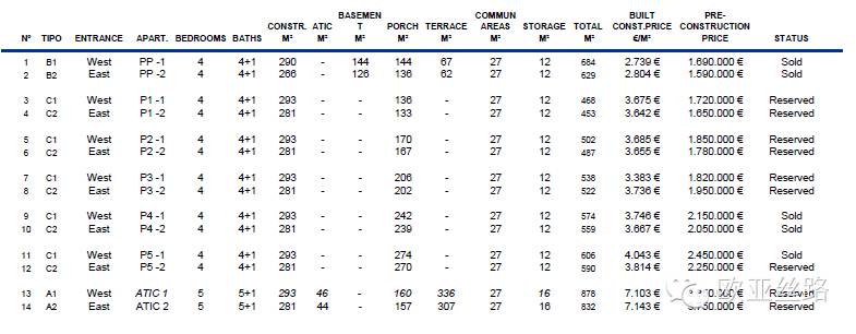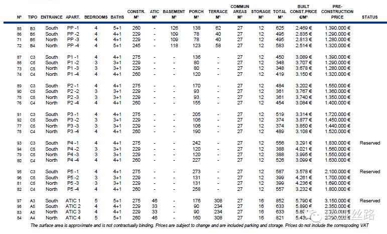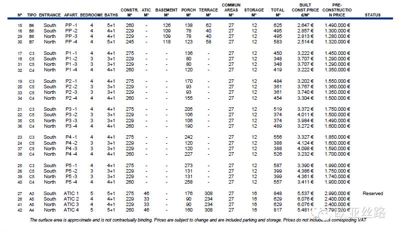 以下是价格列表: